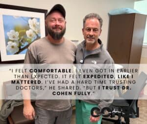 “I’ve had a hard time trusting doctors,” he shared. “But I trust Dr. Cohen fully.”