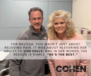 If you are experiencing pain, don’t wait. Leslie says, “Hear Dr. Cohen out and just see what he can offer. Trust him. I’m a living testimony.”